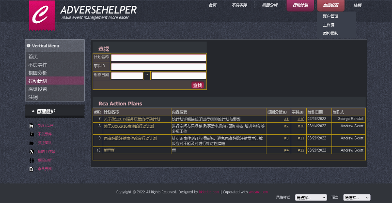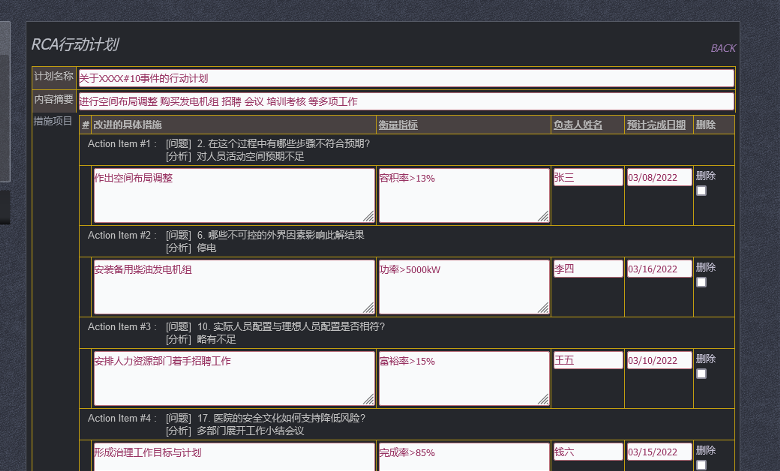 制订行动的前提是选定要分析的事件或根因记录,然后进行行动计划的制订: